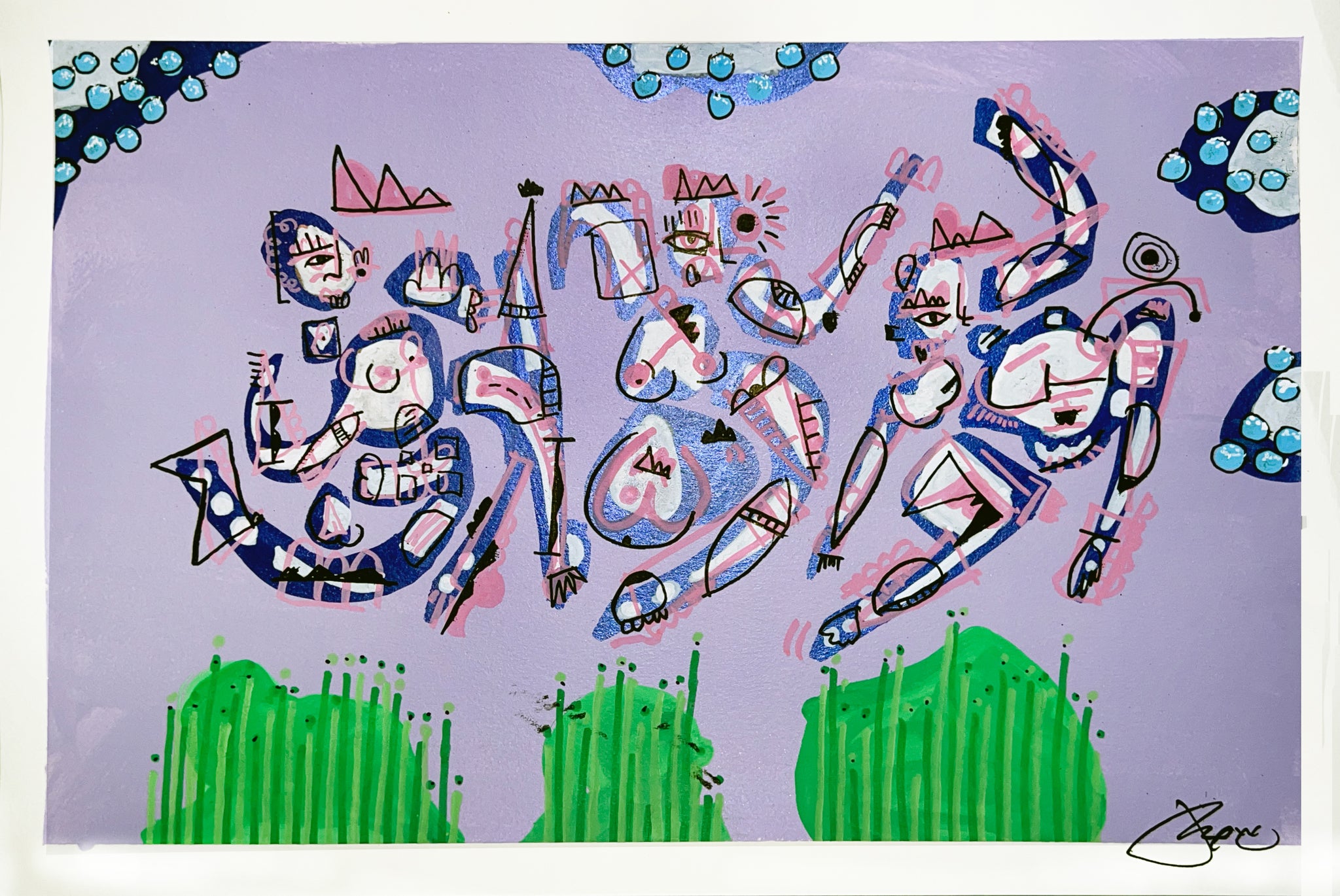 One of a kind, hand-signed, acrylic marker on watercolor paper • 18x12” (22x16" FRAMED)
