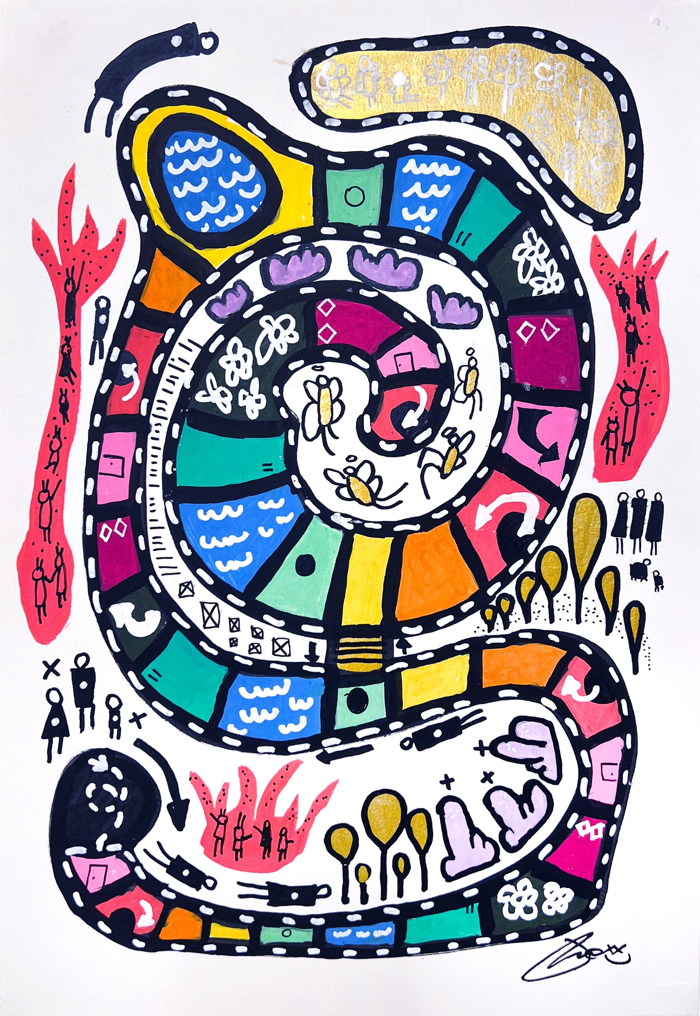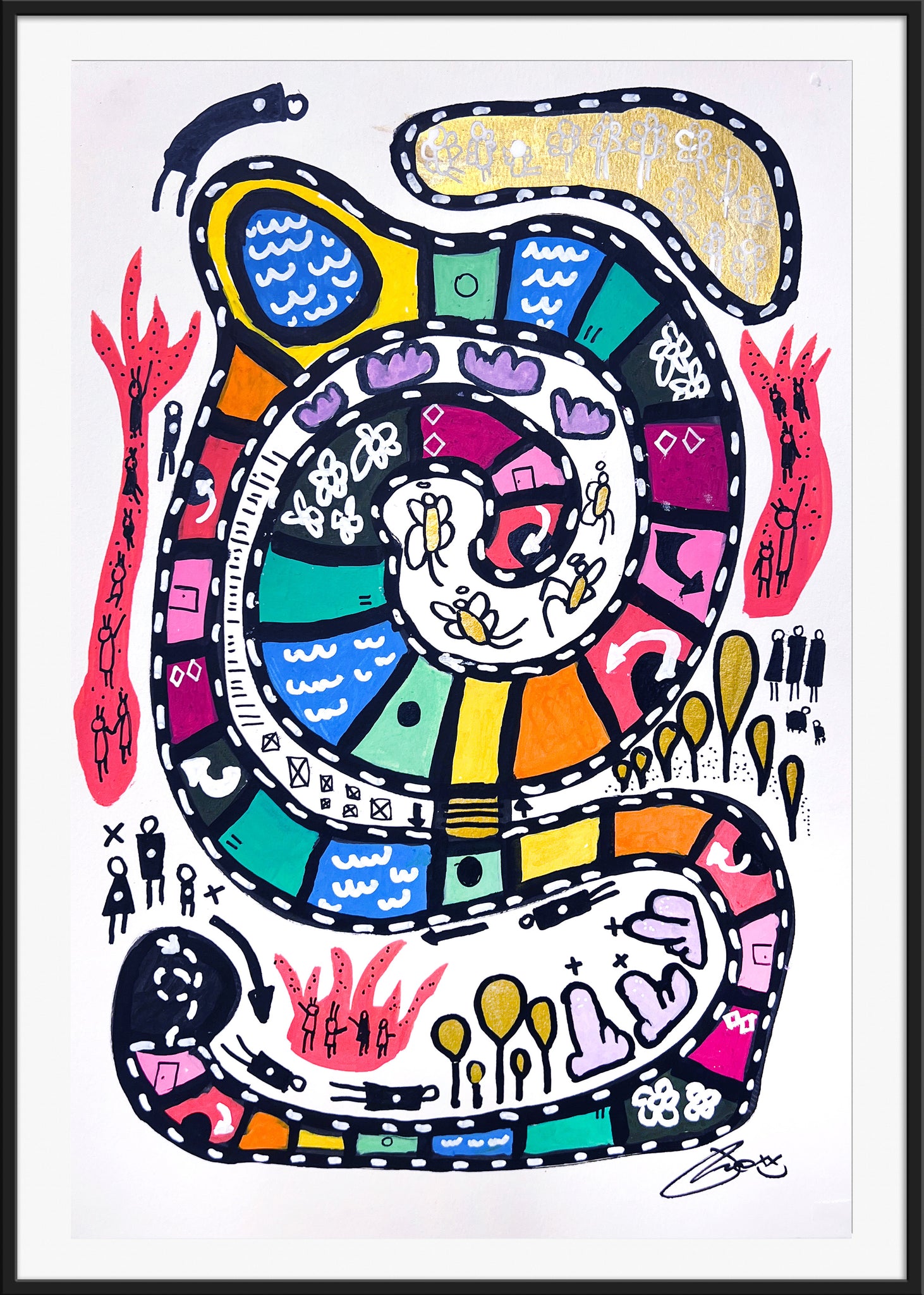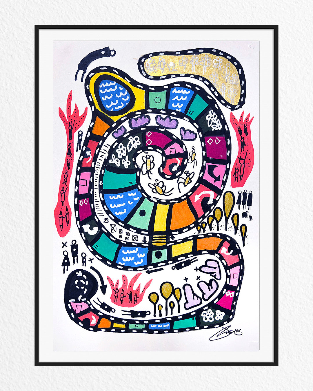 One of a kind, hand-signed, acrylic and ink on watercolor paper • 12x18” (16x22" FRAMED). Framed and ready to hang! Completed August 28, 2025.